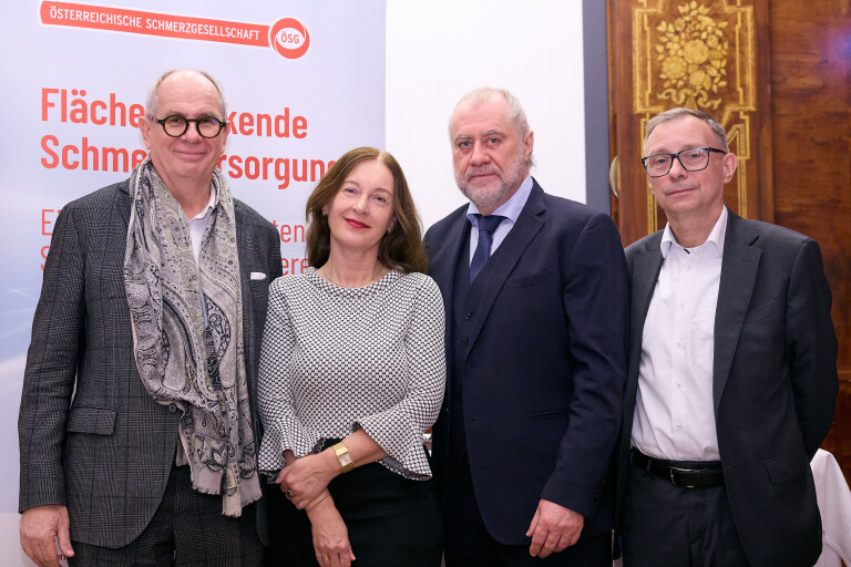 Im Bild v.l.n.r.: Prim. Univ.-Prof. Dr. Rudolf Likar (Generalsekretär der ÖSG), OÄ Dr.in Waltraud Stromer (Past-Präsidentin der ÖSG), Ao. Univ.-Prof. Dr. Wilhelm Eisner (Präsident der ÖSG), Ao.Univ.-Prof. Dr. Richard Crevenna (Vizepräsident der ÖSG)